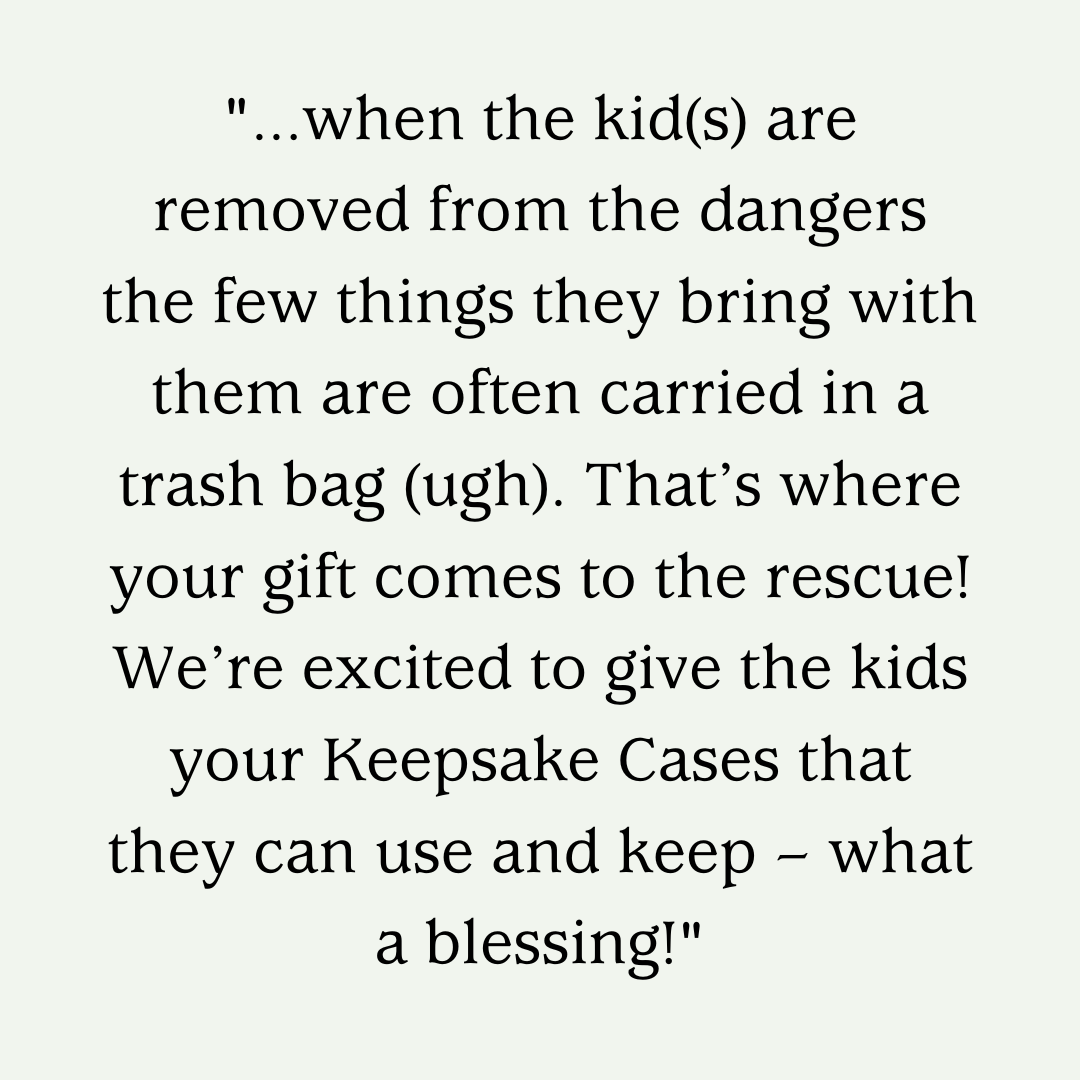 In 2022, we proudly donated three pallets of Keepsake Trunks to children in the foster system.
